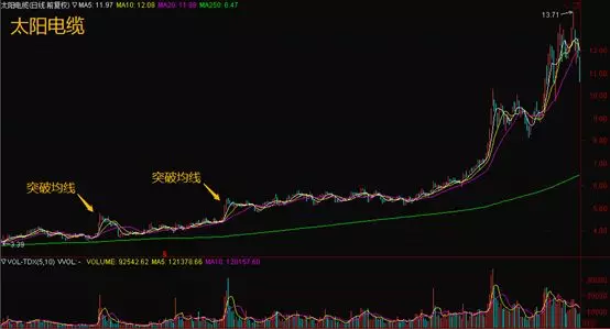 (2)股价突破整理平台的同时如果也突破了均线的压力,则该形态的看涨信号会更加可靠。