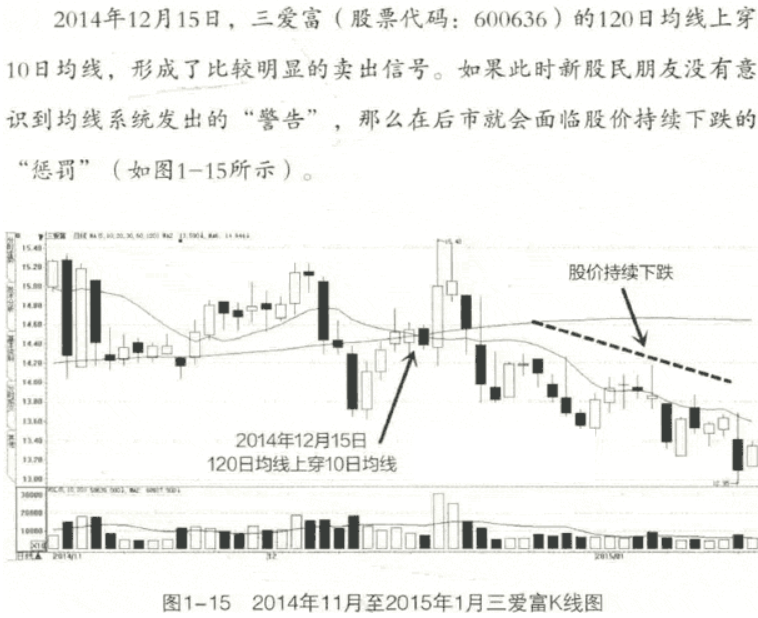 (1)长期移动平均线向上交叉短期移动平均线的时候,新股民朋友最好抛出手中的持股,因为后市极有可能会迎来一波下跌行情。