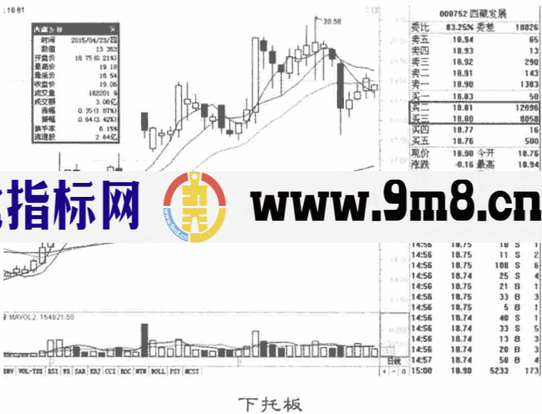 在报价栏里出现大量的买单而少量的卖单现象,俗称 下托板 。交易者如果真看好该股,通常会朝现有的卖单直接申报,甚至直接照卖二、卖三的价位挂单,很难在盘面上出现有大量委买单的现象。委买单越多,只会迫使其他交易者以更好的价格买入,而挂在盘口的买单是无法很快成交的。所以,迫使散户抢单或阻止股价下跌,是下托板的真正用意。下托板又分两种,分别是只托不压和大托小压。