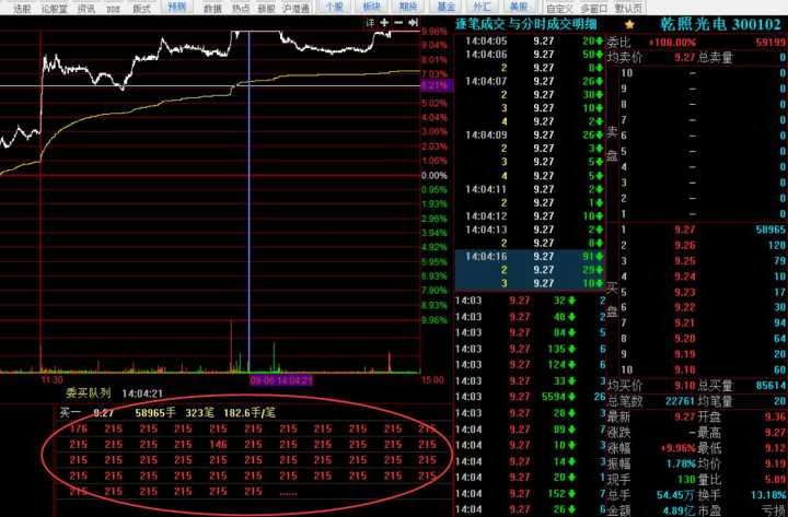 有趣的事情发生了,整整齐齐N单215手的单排在涨停位