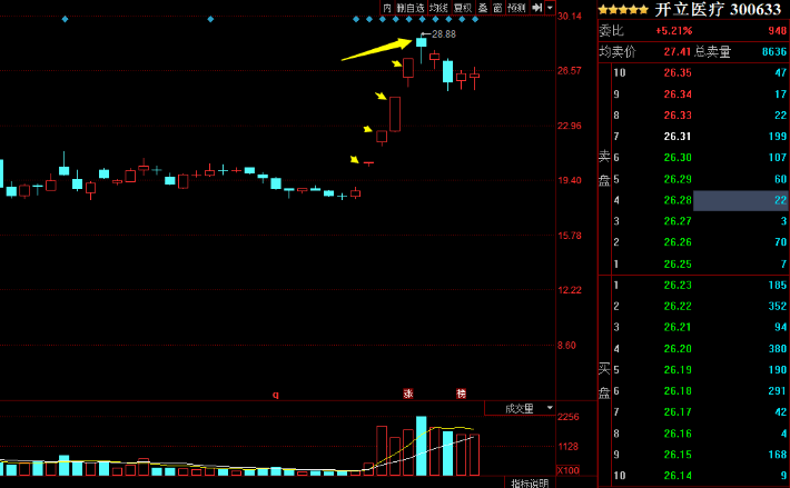 业绩预增板块炒作就是由开立医疗带起,是率先突破三板天花板的个股,因为当时中报 龙头天马科技止步二板,突破三板顶的开立医疗,顺势实现四连板。