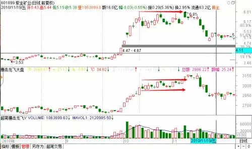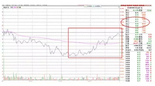 601899,紫金矿业,2010年11月19日下午一点半分时盘口。买一的位置上挂单,此时间段内80%的时间都是强于卖一的位置的,而且买一和买二之和是强于卖一和卖二之和的。