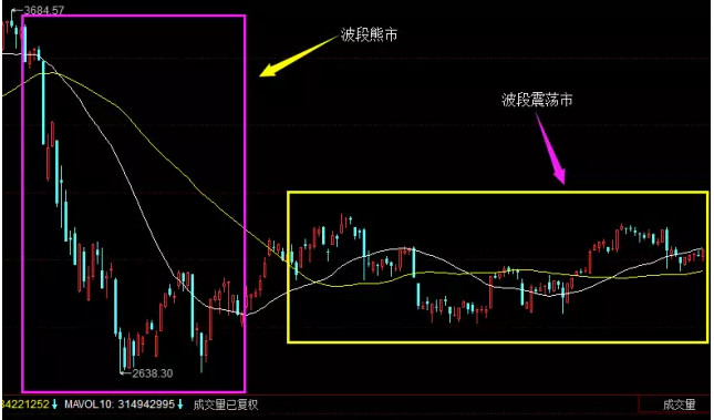 30日线和60日线没有确定的方向,基本是走平或者是略微向上,并且不断粘连,则定义为 波段震荡市 ;