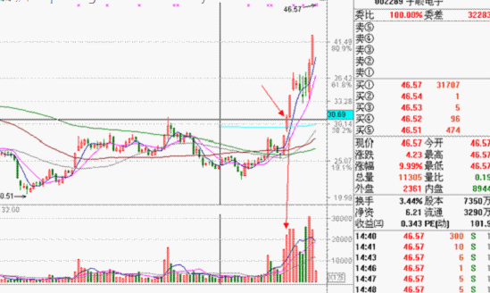 002289,11月5日当天虽然没有涨停,但个股完成了技术上的量价突破,可以根据433战法临盘狙击,该股当日换手22%,随后短短几日在大盘暴跌行情中越挫越勇接近翻倍。从该股当日的换手看主力对倒手法明显,该股应该属于游资或私募股票,从软件数据看该股三季度是没有主力进入的,但从K线形态看前期该股已经完成了前期的打压建仓的任务。