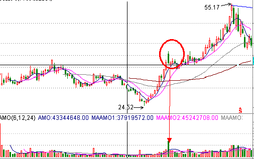 第一,建仓完毕,通过对敲或对倒激活股价开始波段上涨行情