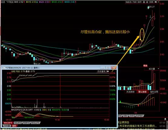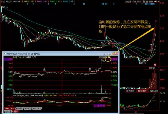 在10:30~11:00涨停的股票,这种风险更大,经常有下午开盘后涨停就被打开的情况。在13:15~14:00涨停的ST股,如果涨停时换手率很小(低于1%),分时图表现为冲击涨停前只有非常稀少且不连贯的成交,只是在冲击涨停时才逐渐有量放出,并且在冲击涨停时股价走势比较连贯,没有大起大落,则也可以。之所以这个时间段以考虑ST股为主,原因是ST股的涨停只有5%,在上午的交易中,即使散户买进,今天涨停,散户获利也不大,第二天的获利抛压也不会太大,但是涨10%的股票就不同,上午涨停,那么上午买进的散户获利就相当大,第二天抛压相当重,风险也就加大了。