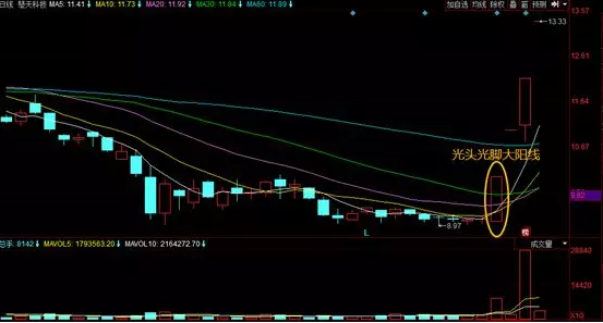 日K线若是光头光脚的大阳线,则该股后期继续涨停的概率增加。高开高走涨停说明走势极其强势,庄家用力拉升,更容易吸引跟风盘,第二天能走得更高。由于当天没有在低价区成交,获利盘获利较少,抛压出现的位置也会相应提高,从而留出更大的获利空间。