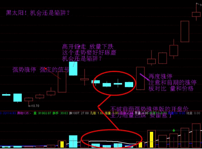黑太阳战法的核心关键词是:涨停板 跳空高开 恐怖大阴线 放出巨量 洗盘 创新高。