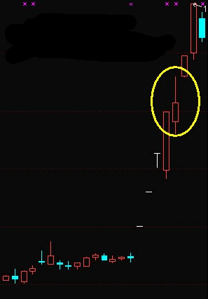 就不得不把收集筹码和拉高股价同时进行,也就是说在拉升的同时要有人不断的把筹码抛给他!因此游资选择介入的位置,都已经有大部分投资者短期被套,并且在各自的成本价附近等待解套,在此我就简单剖析其中一种游资手法-----两阴一阳。