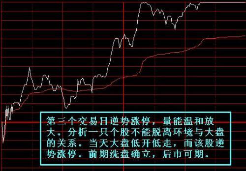 图例四:第三个交易日逆势涨停显示强势特征。主力手法稳健,弱势行情如此处乱不惊,后市可期。