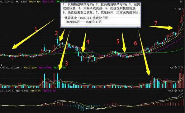 其四,通常的经典理论是庄家洗盘时不破10日均线,且成交量呈递减之势。但我们发现,现在市场上的庄家往往并不遵守这一规则,他们不仅砸破10日均线,还时时砸破30日均线,甚至是放量之后,我们发现了问题的关键所在:这么大的成交量,一般的散户有几个敢到相对高位去接这种火棒呢?何况还是不祥的放量下跌!所以除了庄家对倒,我们很难再想到别的可能。所以千万别被这种洗盘给吓出局,否则我们是无法享受到最后疯狂的喜悦!