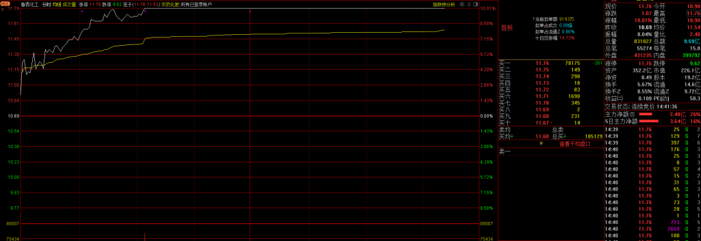 两只票的分时,鲁西化工跟前面说过的金徽酒有点像,至少是有些合力的,而罗平锌电可能是独食。