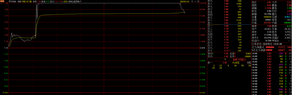 但这种涨停是被动的是跟随别的票起来的,不是主动向上涨的。