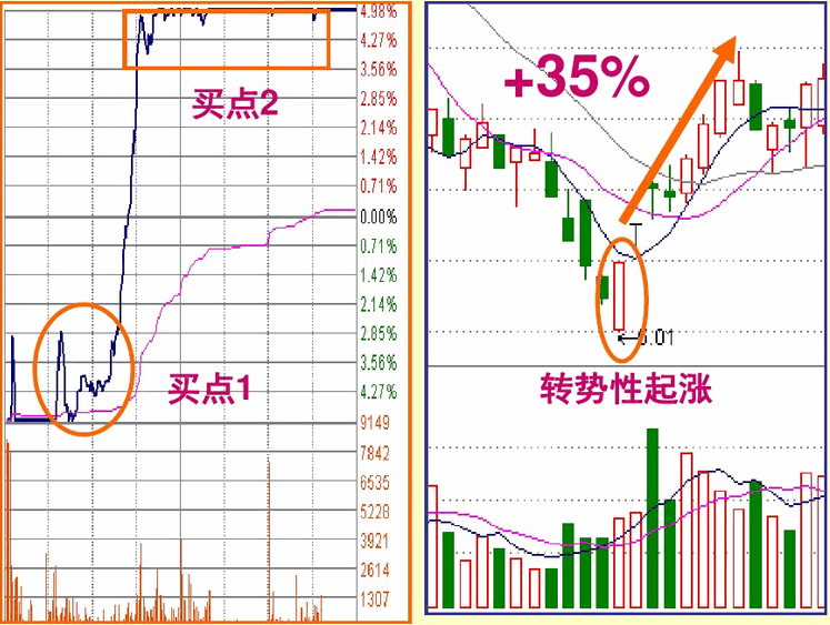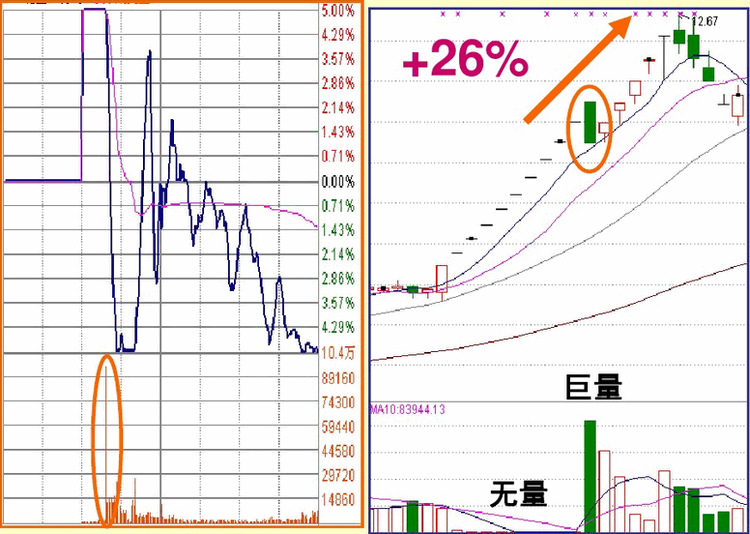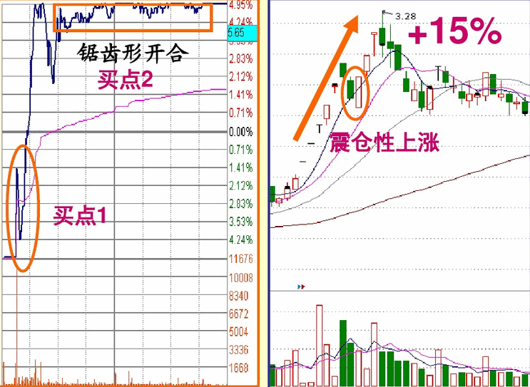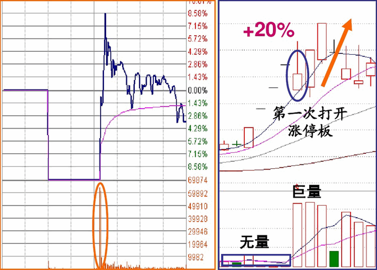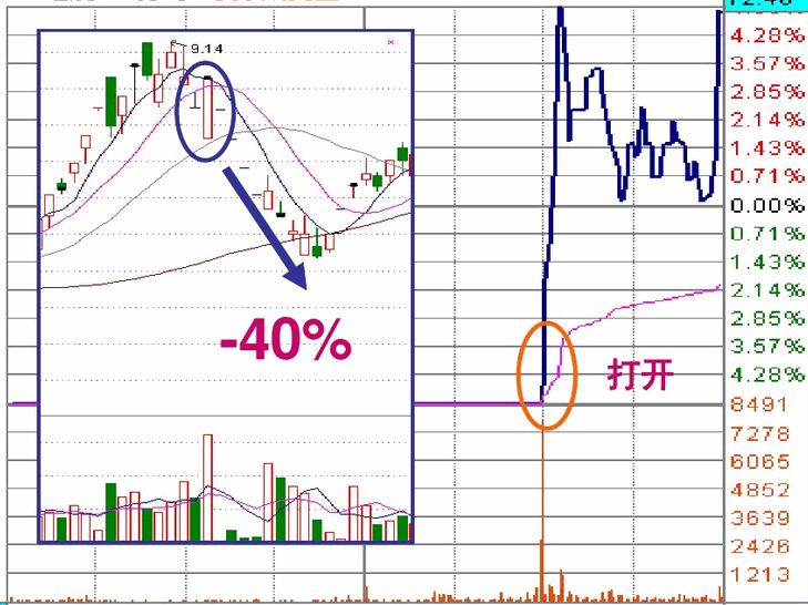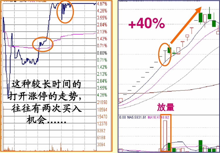 对于一字型涨停板第一次被打开涨停之后的上涨,其本质是惯性上涨,因为主力要出货必须有成交量,而惯性上涨就是放量的过程,尽管这个过程的本质是主力出货,但其运行程序任然能使我们获利,原则是快进快出,见好就收。但有两种打开涨停的走势是不能参与的: