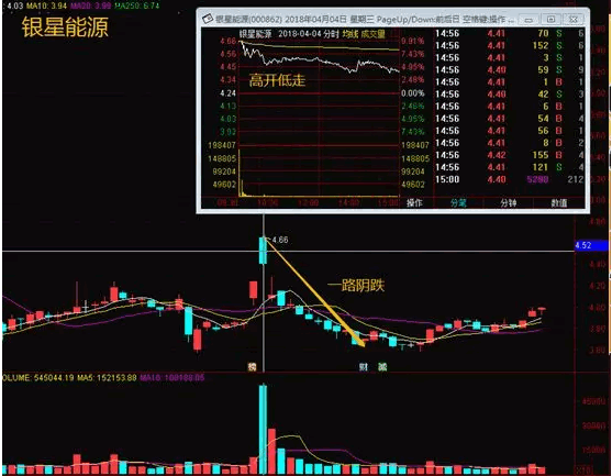 盘口特征:开盘即快速拉高,然后一路卖出,大单小单一起下,呈现出一种毫不掩饰、坚决出局的态势。