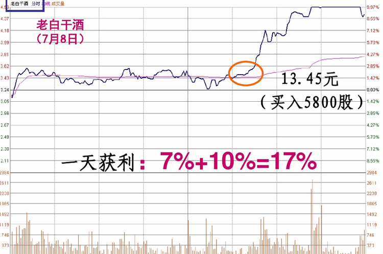 在涨停之后进行换股操作通常具有极大地冒险性质,在一般情况下,我们不提倡随意换股的。但对于有勇气追求完美操作和利润最大化的涨停高手来说,有时候果敢、巧妙地换股,会带来涨停板的 接力棒 效应,一天之内有可能获利高达百分之十几,甚至百分之二十以上!这个时候不仅是资本的巨大增值,而且是心理满足的巨大增值,一种伟大的成功感会油然而生,强烈的自信心会对你自己今后的人产生持久地良性影响。