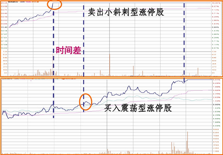 2.卖出小斜刺型涨停板股票,买入大斜刺型涨停板股票。