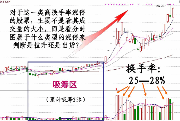 1.V型反转的K线形态中初期放量的涨停板,其性质是吸筹 在涨停分时形态上多为震荡型涨停和阶梯型涨停。