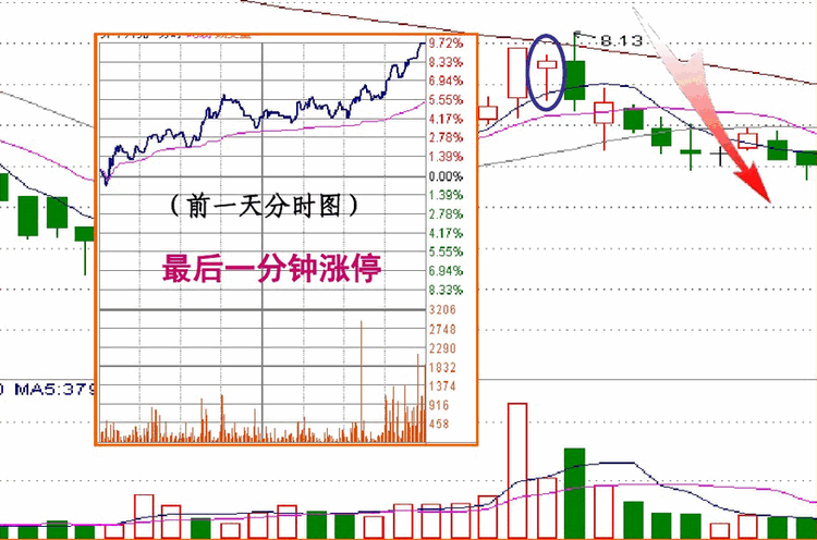 通常,我们可以从涨停板在K线的位置高度来判断涨停板的性质:
