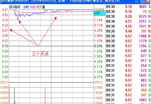 600039,四川路桥,流通盘3.04亿,2010年5月31日,集合竞价时4665手巨量超强高开4.3%,远高于该档的2000手标准,资金注入强度值极高,我们看看该股的技术形态: