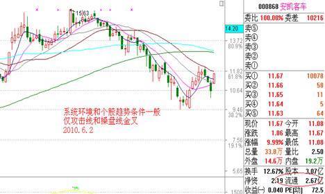 5、 个股均线系统多头排列最佳,仅生命线、决策线、趋势线多头排列次之,仅攻击线和操盘线金叉最次,均线完全空头排列慎用。