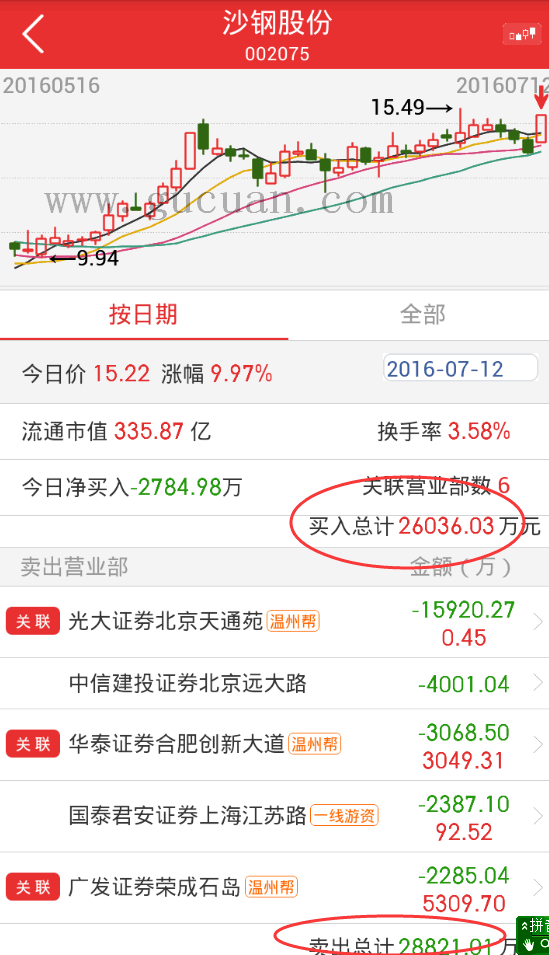 买入温州帮实际买 入2.6亿,卖出合共卖出2.88亿