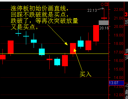 ①涨停板初始价是主力的成本,如果回调不跌破,就是主力洗盘,不跌破出现放量拉升就是买入时机。