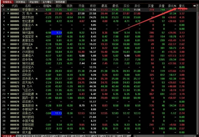 首先在操作软件中找到 量比 数据栏,查看所选股票的 量比 数据