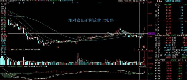 2、刚放量:前面没有过明显放量,首日刚开始放量