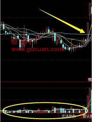 1.大跌一段后,6/12/18均线纠结在一起,量缩后渐放大,长均线在下,指数走平或微升,一根巨量长红启动行情。