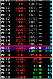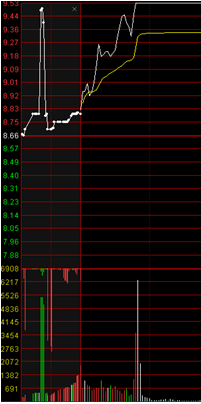 我们再来看看单子的变化情况,逐步变大到以最大量开盘。都是由于庄家竞价的运作才会出现这样的大量开盘情况。(右上图)