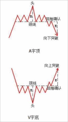 看了上述过程,我们知道了顶都是走出来以后才可以确认的,既然这样就有可能走失败,那么这个顶就变化了。下面我们先了解一下A字顶、M顶、头肩顶、三重顶、多重顶的形成、确认过程,以便于我们后续的讨论更加明确易懂。