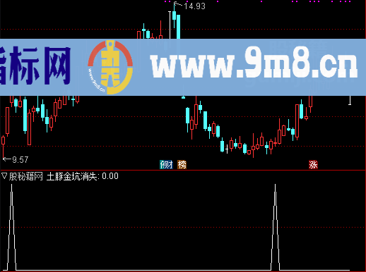 VAR1赋值:收盘价的27日简单移动平均 VAR2赋值:(收盘价-VAR1)/VAR1*100 VARA赋值:VAR2的2日简单移动平均 VARB赋值:上次-10上穿VARA=1距今天数 VARC赋值:上次VARA上穿10=1距今天数 VARD赋值:VARA<-10 AND VARB>3 VARE赋值:VARA>10 AND VARC>3 黄金坑赋值:如果VARD,返回VARA,否则返回0 黄金赋值:1日前的黄金坑<0 输出土豚金坑消失:黄金 AND 黄金坑=0