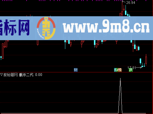 截杀二代:IF(AA4>0 AND COUNT(AA4>0,10)=1 AND AA3<100 >=1 AND (H-C)/C*100<1 AND REF(C<O,1) ,5,0);