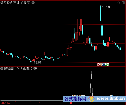 N赋值:5 M赋值:3 VAR1赋值:(收盘价-开盘价)/开盘价*100 VAR2赋值:1日前的收盘价 VAR3赋值:收盘价-VAR2和0的较大值的6日[1日权重]移动平均/收盘价-VAR2的绝对值的6日[1日权重]移动平均*100 VAR4赋值:统计20日中满足VAR3=1 VAR5赋值:(成交额(元)的5日简单移动平均/成交量(手)的5日简单移动平均/100-成交额(元)的125日简单移动平均/成交量(手)的125日简单移动平均/100)/(成交额(元)的5日简单移动平均/成交量(手)的5日简单移动平均/100) VAR6赋值:(45日内最低价的最低值-收盘价)/(45日内最高价的最高值-45日内最低价的最低值)*100的N日简单移动平均 VAR7赋值:-5上穿VAR6 AND VAR5<-0.4 VAR8赋值:1日前的收盘价 VAR9赋值:收盘价-VAR8和0的较大值的5日[1日权重]移动平均/收盘价-VAR8的绝对值的5日[1日权重]移动平均*125 VAR10赋值:收盘价-VAR8和0的较大值的10日[1日权重]移动平均/收盘价-VAR8的绝对值的10日[1日权重]移动平均*125 VAR11赋值:收盘价的10日简单移动平均 VAR12赋值:收盘价的20日简单移动平均 VAR13赋值:VAR9<80 AND VAR10<78 AND 成交量(手)/当前流通股本(手)的10日累和*125>=10 AND 收盘价/120日内收盘价的最低值<=1.2 AND (收盘价-15日内收盘价的最低值)/15日内收盘价的最低值>=0.12 AND 收盘价/开盘价>1.02 AND VAR11>VAR12 低位狙击赋值:VAR1>9 AND VAR4 OR VAR7 OR VAR13,画红色 VAR14赋值:最近6日存在低位狙击 AND 低位狙击的有效数据周期数>=8 AND 收盘价/2日前的最低价<0.97 AND 取反 VAR15赋值:VAR14的10日过滤 输出补仓救援:VAR15