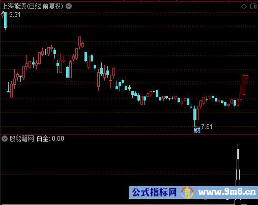 T1赋值:100*(收盘价-5日内最低价的最低值)/(5日内收盘价的最高值-5日内最低价的最低值) T2赋值:100*(收盘价-10日内最低价的最低值)/(10日内收盘价的最高值-10日内最低价的最低值) T3赋值:100*(收盘价-20日内最低价的最低值)/(20日内收盘价的最高值-20日内最低价的最低值) T4赋值:100*(收盘价-30日内最低价的最低值)/(30日内收盘价的最高值-30日内最低价的最低值) AA1赋值:上次30上穿T1距今天数<2 AND 上次T1上穿50距今天数<2 BB1赋值:上次T4上穿T1距今天数<2 AND T1>T4 EE1赋值:T1>60 AND T4>70 输出白金:AA1 AND BB1 AND EE1