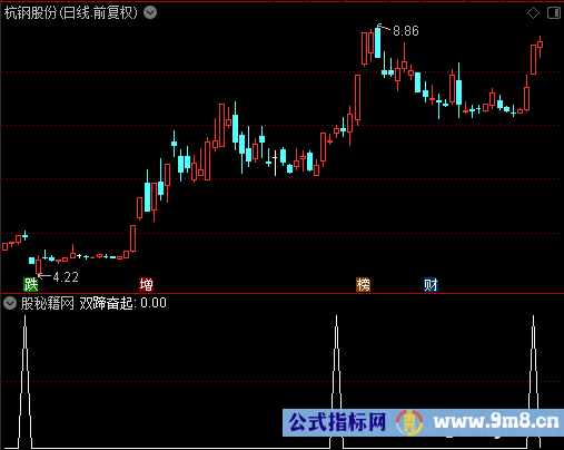 F0赋值:上次收盘价的5日简单移动平均上穿收盘价的90日简单移动平均距今天数 F1赋值:F0 AND 上次收盘价的20日简单移动平均上穿收盘价的90日简单移动平均距今天数 输出双蹄奋起:F1 AND 收盘价的5日简单移动平均上穿收盘价的20日简单移动平均 AND 收盘价的20日简单移动平均>收盘价的90日简单移动平均