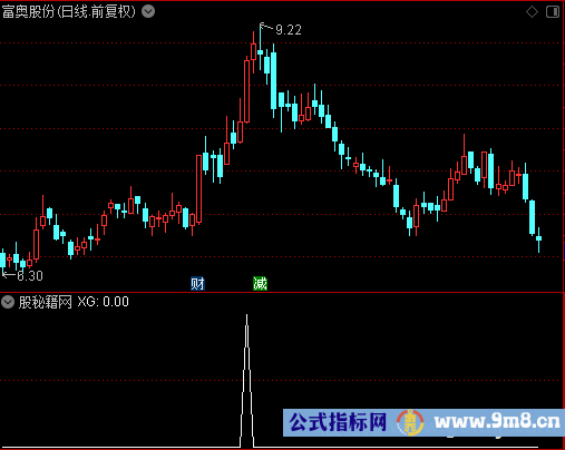 ZB:=H=ZTPRICE(REF(C,1),0.1) AND C<H;TZB:=BARSLAST(ZB);XG:COUNT(ZB,10)=2 AND CROSS(C,REF(H,TZB));九毛八公式解读 ZB赋值:最高价=计算涨停价 AND 收盘价<最高价 TZB赋值:上次ZB距今天数 输出XG:统计10日中满足ZB的天数=2 AND 收盘价上穿TZB日前的最高价