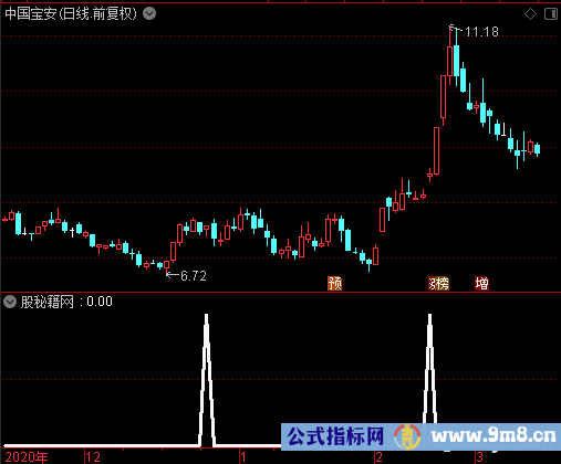 X_1赋值:(2*收盘价+最高价+最低价)/4 X_2赋值:5日内最低价的最低值 X_3赋值:5日内最高价的最高值 X_4赋值:(X_1-X_2)/(X_3-X_2)*27的5日指数移动平均 X_5赋值:X_4的3日指数移动平均 以收盘价计算的获利盘比例-1日前的以收盘价计算的获利盘比例>0.1ANDCLOSE/1日前的收盘价<1.05ANDCAPITAL<1000000000ANDEVERY(X_4>17,3)ANDEVERY(X_5>17,3)的30日过滤,线宽为3