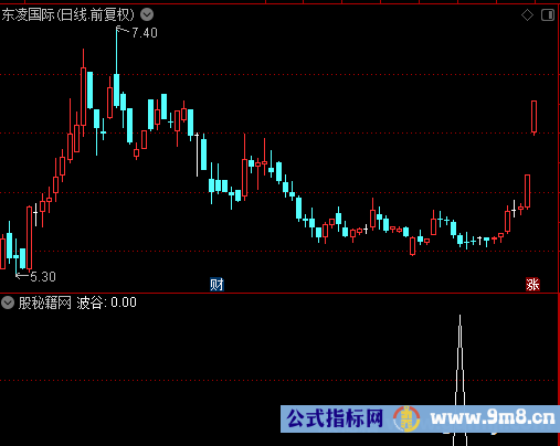 RSV赋值:(收盘价-40日内最低价的最低值)/(40日内最高价的最高值-40日内最低价的最低值)*100 K赋值:RSV的18日[1日权重]移动平均 D赋值:K的3日[1日权重]移动平均 J赋值:3*K-2*D 轨道线赋值:(J+1日前的J+2日前的J+3日前的J)/4*(K/D) 输出波谷:轨道线上穿J AND 轨道线<22