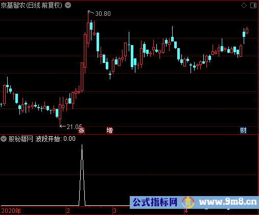 VAR3AA赋值:如果(收盘价>1日前的收盘价),返回88,否则返回0 VAR4AA赋值:如果((收盘价)/(1日前的收盘价)>1.05)AND((最高价)/(收盘价)<1.01)AND(VAR3AA>0),返回91,否则返回0 输出波段开始:(VAR4AA>90)的45日过滤