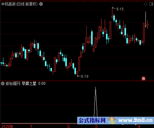 输出早晨之星:2日前的收盘价/2日前的开盘价<0.95并且1日前的开盘价<2日前的收盘价并且1日前的开盘价-1日前的收盘价的绝对值/1日前的收盘价<0.03并且收盘价/开盘价>1.05并且收盘价>2日前的收盘价