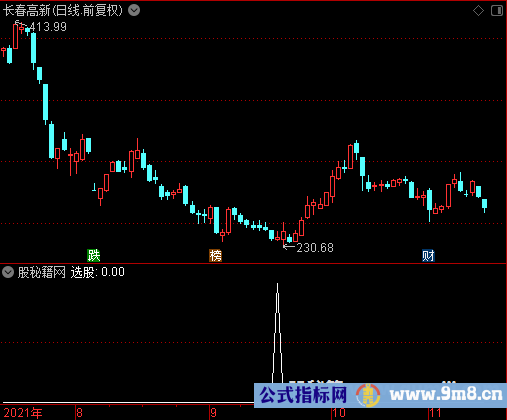 三日内涨二点卖:=HHV(H,3)>REF(C,3)*P AND REF(CROSS(XG,0.8),3);