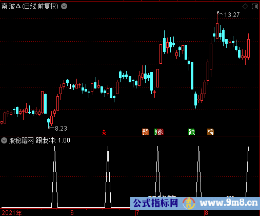A7赋值:收盘价-1日前的收盘价 A8赋值:100*A7的6日指数移动平均的6日指数移动平均/A7的绝对值的6日指数移动平均的6日指数移动平均 买赋值:2日内A8的最低值=7日内A8的最低值 AND 统计2日中满足A8<0的天数 AND A8上穿A8的2日简单移动平均 输出跟我冲:买=1的5日过滤