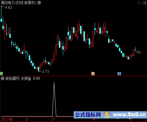 VARF赋值:100-3*(收盘价-75日内最低价的最低值)/(75日内最高价的最高值-75日内最低价的最低值)*100的20日[1日权重]移动平均+2*(收盘价-75日内最低价的最低值)/(75日内最高价的最高值-75日内最低价的最低值)*100的20日[1日权重]移动平均的15日[1日权重]移动平均 VAR10赋值:100-3*(开盘价-75日内最低价的最低值)/(75日内最高价的最高值-75日内最低价的最低值)*100的20日[1日权重]移动平均+2*(开盘价-75日内最低价的最低值)/(75日内最高价的最高值-75日内最低价的最低值)*100的20日[1日权重]移动平均的15日[1日权重]移动平均 VAR11赋值:VARF<1日前的VAR10 AND 成交量(手)>1日前的成交量(手) AND 收盘价>1日前的收盘价 DZJ赋值:VAR11 AND 统计30日中满足VAR11的天数=1 输出大资金:DZJ