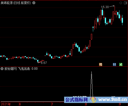 T1赋值:收盘价/1日前的收盘价>=1.099 T2赋值:统计10日中满足T1的天数>=1 AB赋值:(成交量(手)/1日前的成交量(手)) T3赋值:如果(((收盘价/1日前的收盘价)>=1.03)AND(AB<1)),返回1,否则返回0 A1赋值:1日前的收盘价>23日前的收盘价 输出飞龙出击:T3=1 AND T2 AND A1AND 最低价<收盘价 AND 总量>0AND (最高价-收盘价)/收盘价*100<0.5 AND (开盘价-最低价)/开盘价*100<4.5
