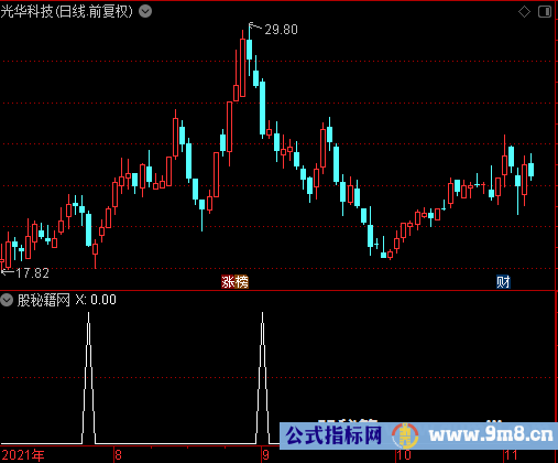 X9_1赋值:最高价-最低价和1日前的收盘价-最高价的绝对值的较大值和1日前的收盘价-最低价的绝对值的较大值 X9_2赋值:(最高价+最低价)/2+X9_1的2日简单移动平均 X9_3赋值:(最高价+最低价)/2-X9_1的2日简单移动平均 X9_4赋值:上次X9_2<=1日前的X9_2距今天数日前的X9_2 X9_5赋值:2*1.5日内X9_2的最低值 X9_6赋值:如果X9_5不等于1日前的X9_5ANDX9_4<1日前的X9_4,返回X9_4,否则返回如果X9_4=X9_5,返回X9_4,否则返回X9_5 X9_7赋值:上次0.5上穿X9_2=X9_6距今天数+1 X9_8赋值:统计X9_7日中满足收盘价上穿X9_6ORCROSS(收盘价,2日前的X9_6)ANDX9_2>X9_6的天数上穿0.5 X9_9赋值:上次X9_8距今天数 X9_10赋值:上次X9_9+1日内X9_3的最高值上穿收盘价距今天数 X9_11赋值:收盘价的18日简单移动平均 X9_12赋值:收盘价>=X9_11*1.004 X9_13赋值:X9_11>=1日前的X9_11 X9_14赋值:X9_12 AND X9_13 X9_15赋值:如果收阴线,返回(收盘价-最低价)/(最高价-最低价),否则返回0 输出X:X9_9上穿X9_10 AND 收盘价/1日前的3日内最低价的最低值<1 AND 收阴线ANDSE 收盘价不等于最低价 AND X9_14 AND X9_15>0.03 AND X9_15<0.3 AND (收盘价-1日前的收盘价)/1日前的收盘价*100<(0-4) AND 收盘价<收盘价的14日指数移动平均 AND 收盘价>收盘价的21日指数移动平均 AND 1日前的最近1日收盘价连跌