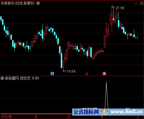 AA赋值:(收盘价*2+最高价+最低价+开盘价)/5 A0赋值:收盘价的5日简单移动平均 A1赋值:(AA的4日指数移动平均+AA的8日简单移动平均+AA的16日简单移动平均)/3,画白色 A2赋值:(AA的9日指数移动平均+AA的18日简单移动平均+AA的36日简单移动平均)/3,COLORFF00FF A3赋值:(AA的13日指数移动平均+AA的26日简单移动平均+AA的52日简单移动平均)/3,COLOR00FF00 A4赋值:(AA的24日指数移动平均+AA的48日简单移动平均+AA的96日简单移动平均)/3,COLOR0000FF A5赋值:100*(收盘价-100日内最低价的最低值)/(100日内最高价的最高值-100日内最低价的最低值)的5日指数移动平均 A6赋值:A5/4 A7赋值:A1和A2的较大值和A3和A4的较大值的较大值 A8赋值:A1和A2的较小值和A3和A4的较小值的较小值 A9赋值:A1和A2的较小值和A3的较小值 A10赋值:A1和A2的较大值和A3的较大值 输出双交叉:A1小于A2保持15个交易日后交叉上穿AND A2上穿A3