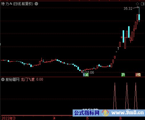 龙门赋值:55日内收盘价的3日简单移动平均的最高值,线宽为2, 画黄色 HH赋值:150日内最高价的最高值的最后一日取值设为常数 LL赋值:150日内最低价的最低值的最后一日取值设为常数 LOWV赋值:9日内最低价的最低值 HIGHV赋值:9日内最高价的最高值 BFB1赋值:(收盘价-LOWV)/(HIGHV-LOWV)*150 BFB0赋值:(HH-LL)/150*BFB1+LL RSV赋值:BFB0的3日指数移动平均 K赋值:RSV的3日指数移动平均 D赋值:K的3日简单移动平均 TJ1赋值:收盘价/1日前的收盘价>=1.07 AND 收盘价>龙门 AND 取反 AND 取反 AND 取反,画淡红色 TJ2赋值:统计3日中满足TJ1的天数 输出龙门飞渡:TJ1 AND TJ2=1,画淡红色