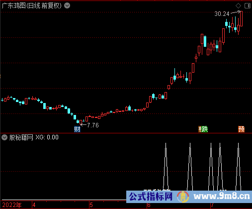 MA5赋值:收盘价的5日简单移动平均 MA10赋值:收盘价的10日简单移动平均 MA60赋值:收盘价的60日简单移动平均 MA120赋值:收盘价的120日简单移动平均 A1赋值:1日前的收盘价<1日前的MA5 AND 开盘价MA5 AND MA5>MA10 ZF赋值:收盘价/15日前的收盘价>=1.30 DM赋值:平滑异同平均线的DIF>平滑异同平均线的DEA 输出XG:A1 AND ZF AND DM